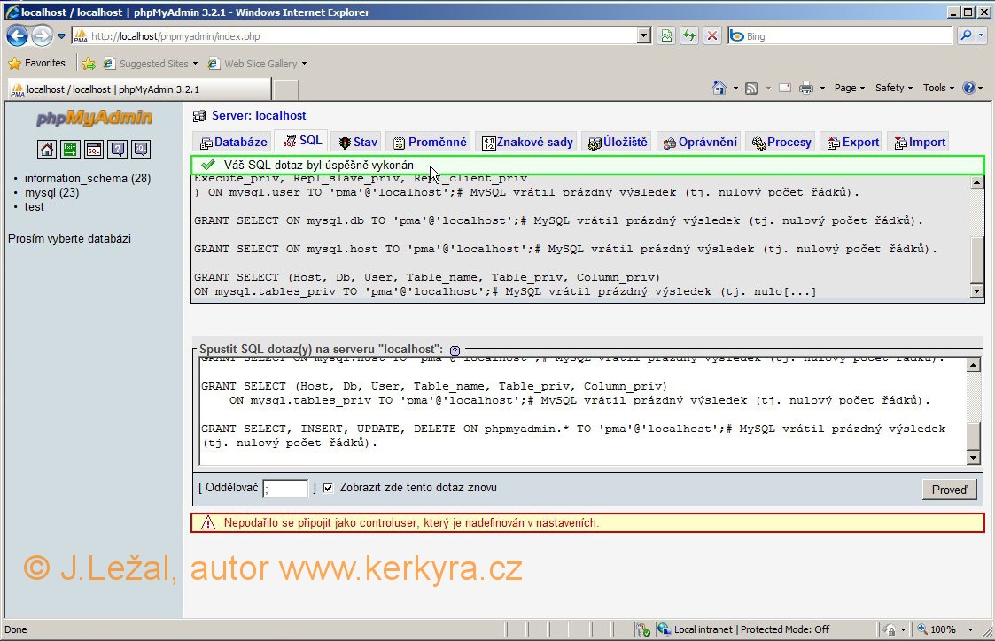 Nahoře by se nám měl ukázat řádek orámovaný zeleně s informací Váš SQL příkaz byl úspěšně vykonán.