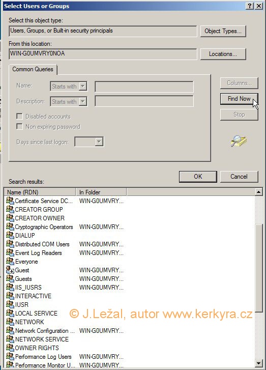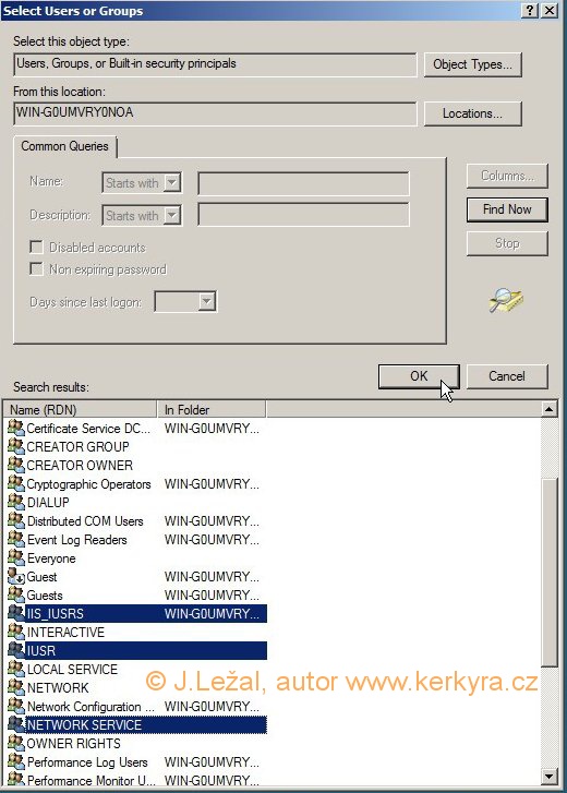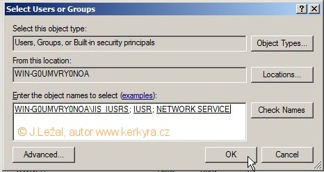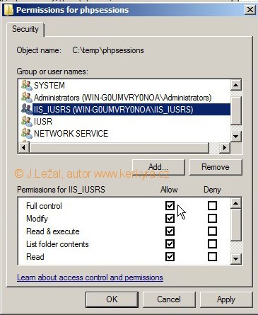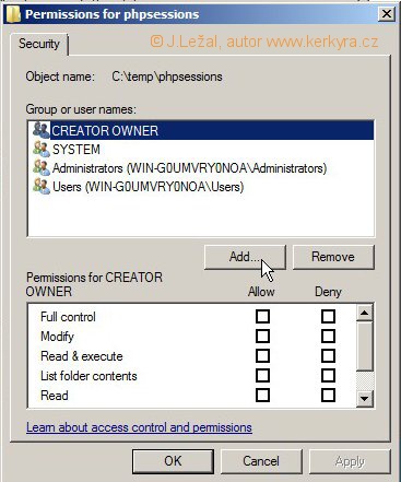 Následně jednotlivě těmto třem skupinám zaškrtneme dole Full Control a poté potvrdíme tlačítky Apply a OK