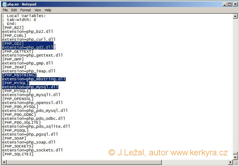 V dolní části souboru jsou pak nastavené proměnné extension. Zkontrolujeme, že jsou nastavené tyto tři:
