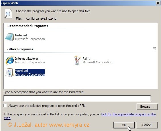 Vybereme WordPad, případně odškrtneme dole Always use.